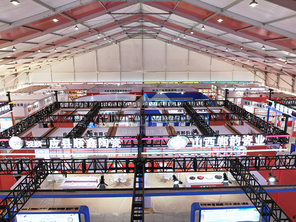 篷房内部空间开阔,占地达数千平方米,为来自朔州本地及国内外的陶瓷企业提供了完美的展示平台。参展商纷纷展示各自的精品力作,包括日用瓷、建筑瓷、工艺瓷等多元化产品。