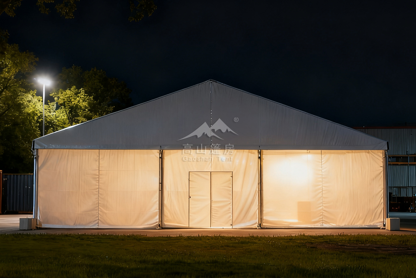 篷房绝非简单的临时帐篷,它是一座真正意义上的“移动房产”。其采用高强度铝合金框架与高性能PVC篷布,结构安全稳固,具备优异的抗风、防雨、防火性能,能应对多种天气挑战。从盛大的婚礼宴会、热闹的品牌展销,到紧迫的工业仓储、高标准的航空机库,甚至应急救灾,篷房都能以百变姿态完美适配。