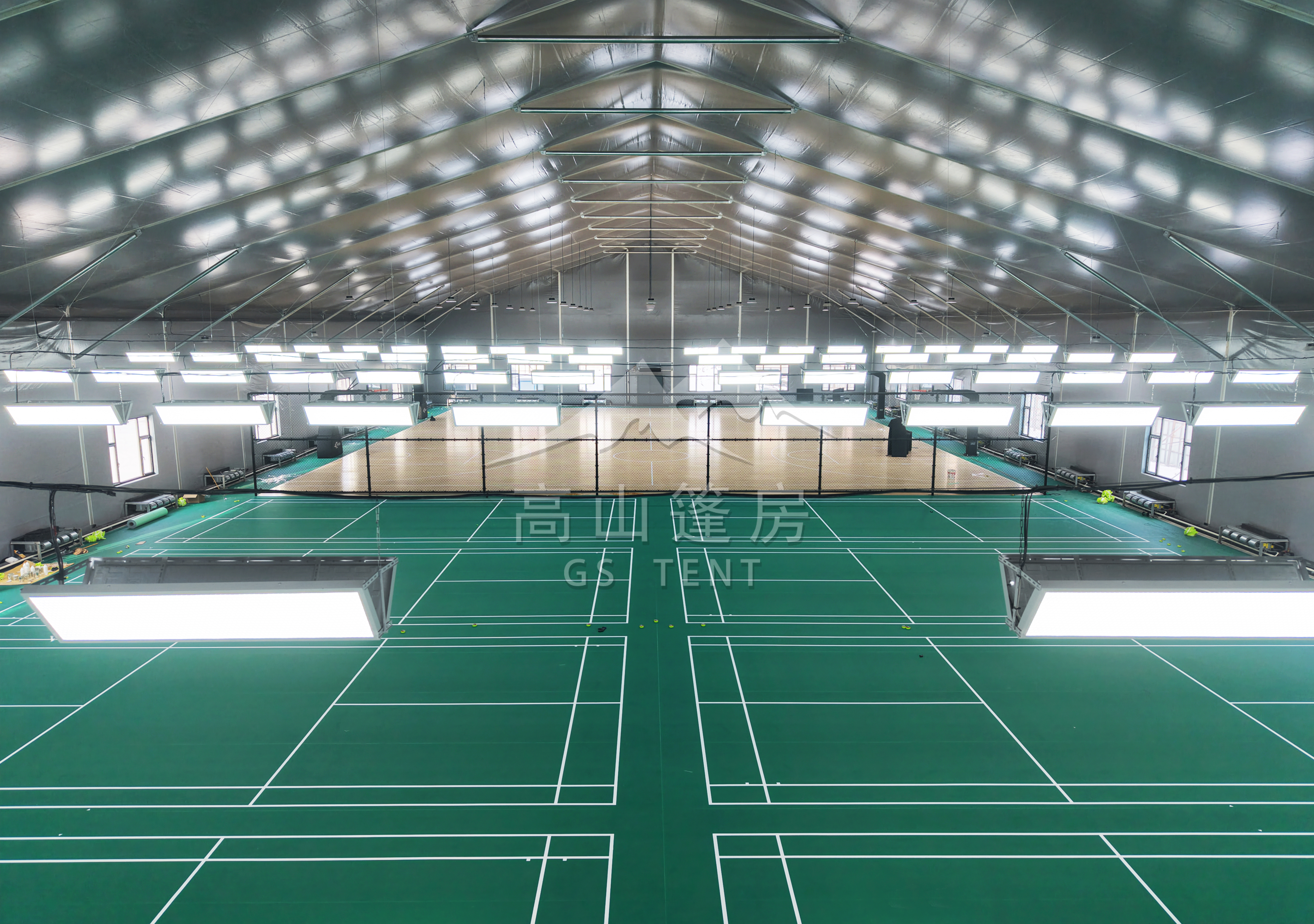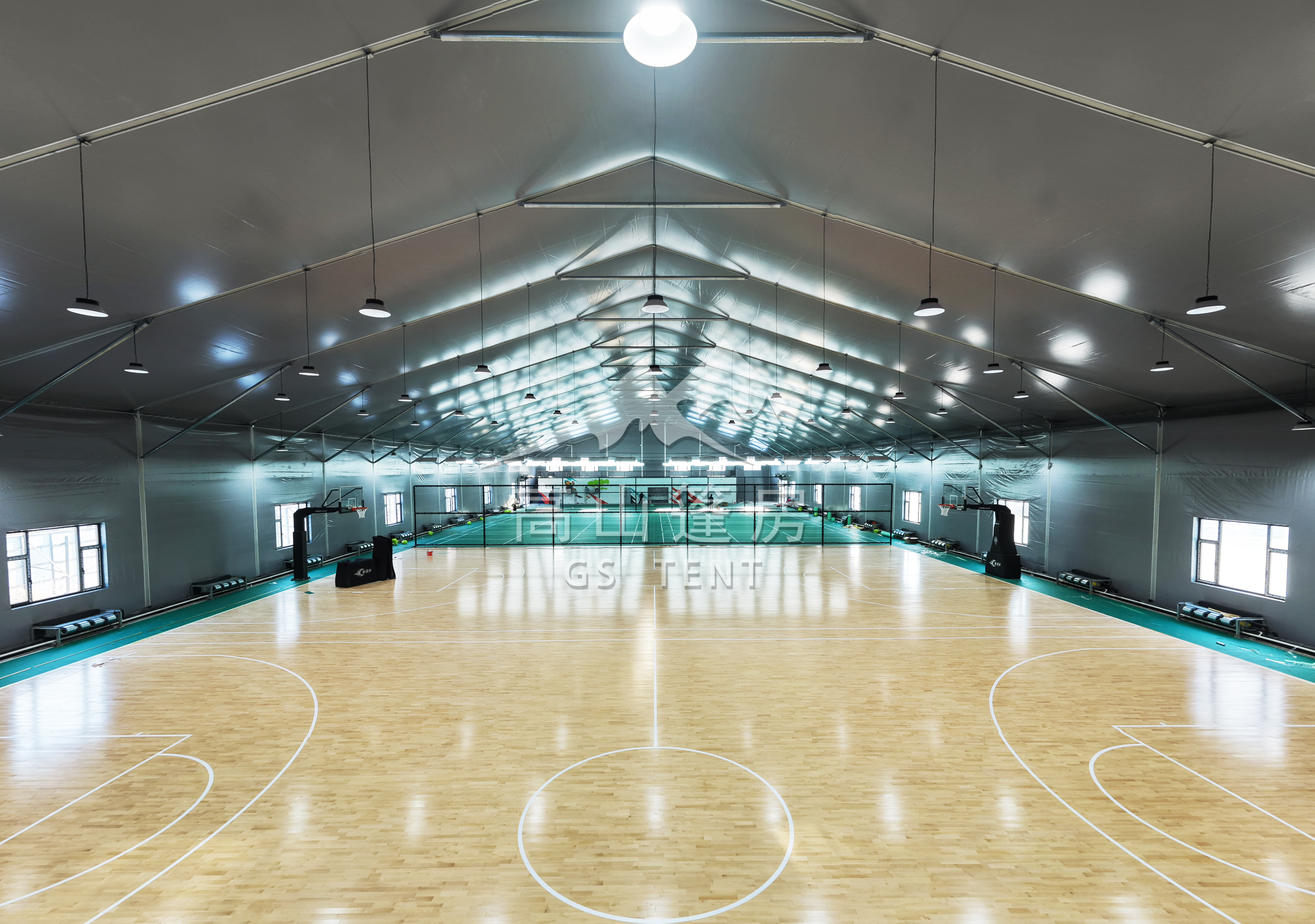 篷房体育馆内部无立柱设计,实现了空间的最大化利用。跨度可达50米,边高可达10米,长度可按需求延伸,创造出开阔完整的运动空间。无论是篮球、羽毛球、网球还是大型健身活动,都能在这里得到完美满足。同时,篷房提供多种造型选择,如人字形、桃形、球形等,既美观又实用。