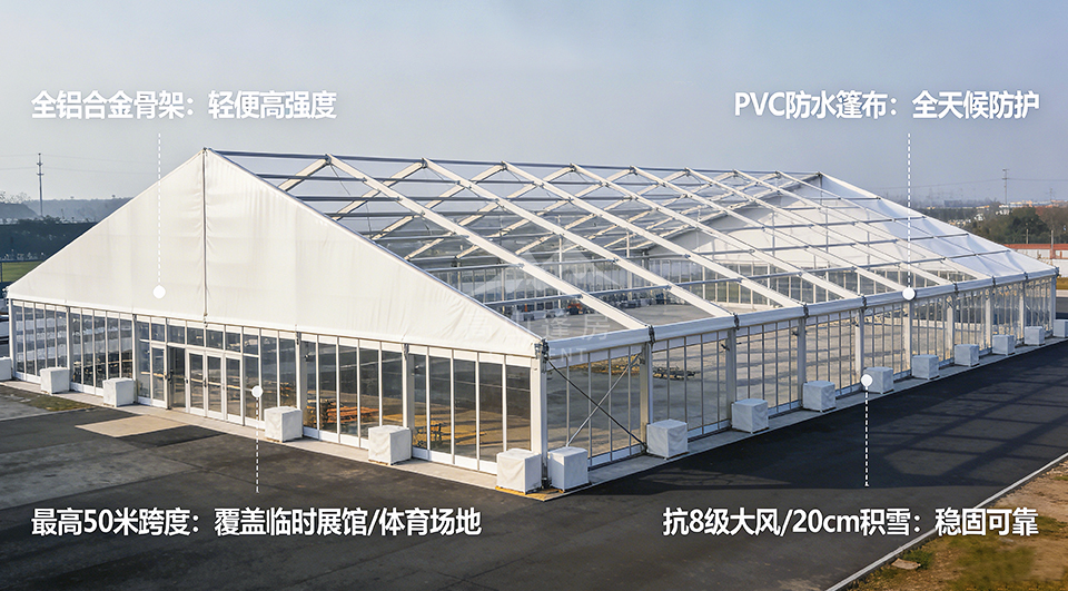 稳如磐石 速建无忧|专业篷房,以硬核抗风抗雪实力,重塑临时建筑安全新标杆